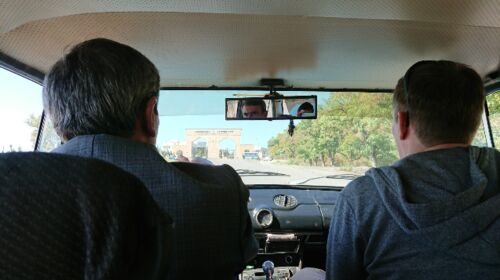 【2017.10.6】 バラカンのMMoilでバスを降り。 考える暇もなくタクシーに声をかけられます。 国境まで西洋人のバックパッカーと相乗りしていくことにしました。 一人5マナト。300円くらい?まあこんなもんでしょ。 またソ連クラシカルな車でゴーです。 町か…