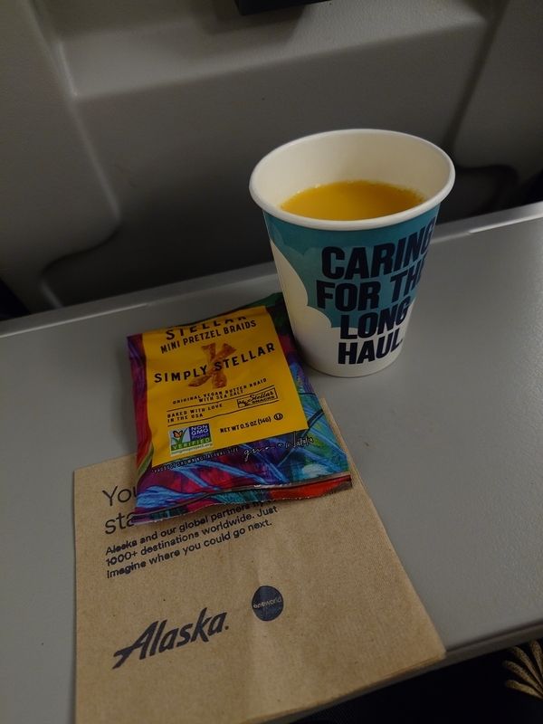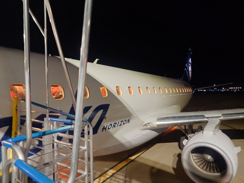 2024-12-09 🚵アラスカ航空🚵 【2027.10.14】メドフォード→シアトルは行きと同じアラスカ航空で。このアラスカ航空の便はJALとのコードシェアでJALから取ったんだけど、帰りのJAL便分はシアトル発券しかできんらしい…ということで、行きは奇跡のファーストクラスアップグレードだったけど、帰りはチケットのままエコノミーで。元々小さい飛行機でナロー。足元はそんなに狭くない。プレエコもあるけど、プレエコはエコノミーよりちょい足元が広いくらいかな。でもエコノミーで十分よこれ。ファーストクラスはお酒がでたけど、エコノミーは飲み物無しかな?と思ったけどソフトドリンクの提供はありました。15分くらい早着したかな?助かりました。